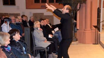 Beim Andachtsjodler „Djo djoiri“, in bewegender Emotionalität vorgetragen, harmonierten die hellen Sopranstimmen prächtig mit dem Alt und den sonoren Bässen, liebevoll begleitet durch die Rotmainsaiten mit Hackbrett und Gitarre. Das „O Nuit“ von Jean-Philippe Rameau – da strahlten die Tenöre – verbreitete Melancholie pur. Mit „Tochter Zion“ und dem Kanon „Lobet und preiset ihr Völker den Herrn“ wurde das Konzert auf das Publikum erweitert.