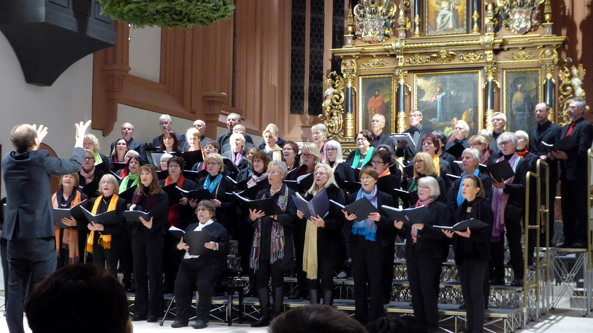 Vom ersten Ton an überzeugten mehr als 50 Sängerinnen und Sänger durch voluminöse Ausdruckskraft und stilsichere Intonierung. Die beeindruckenden Schlussakkorde entschwebten in den hohen Raum. Unser Ensemble reihte Traditionals, sakrale Weisen von Bach und Händel sowie Lieder aus African Noël stimmig aneinander.
