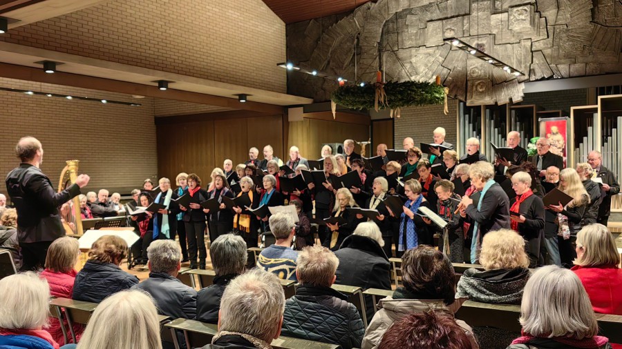 Das mit Blockflöte und Harfe begleitete „O hehre Nacht“ von Adolph Adam als Höhepunkt sorgte für glänzende Augen der Zuhörer.