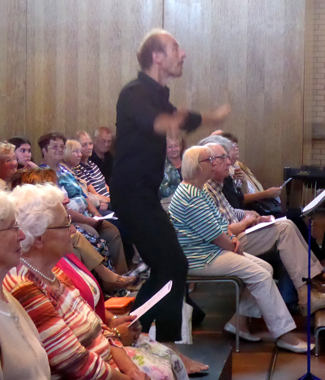 Lebendiges, spontanes Musizieren war im dritten Teil unseres Konzertes zu spüren – dynamisch sehr variantenreich, vom luftigen Sprechen bis zu voller Klangfülle. Beim „Sing Jubiulate Deo“ von Jerry Estes unterstützte Andrew Tessman den Chor perfekt. Im homophonen „Segen des Aaron“ war der geschlossene, volle Klang in all seinen Varianten noch einmal zu hören.